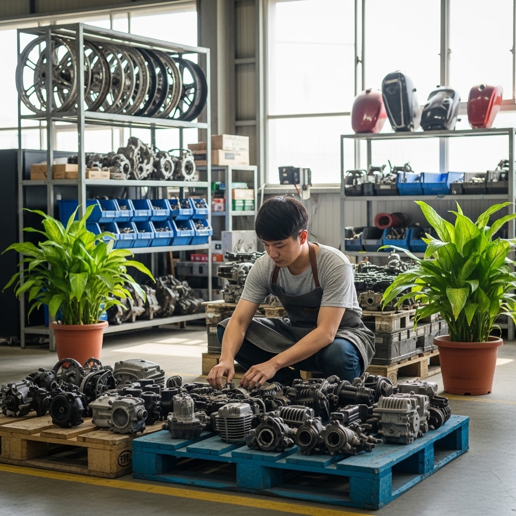零件分離:將可再利用的零件,如二手機車零件或車行零件,進行分類整理。